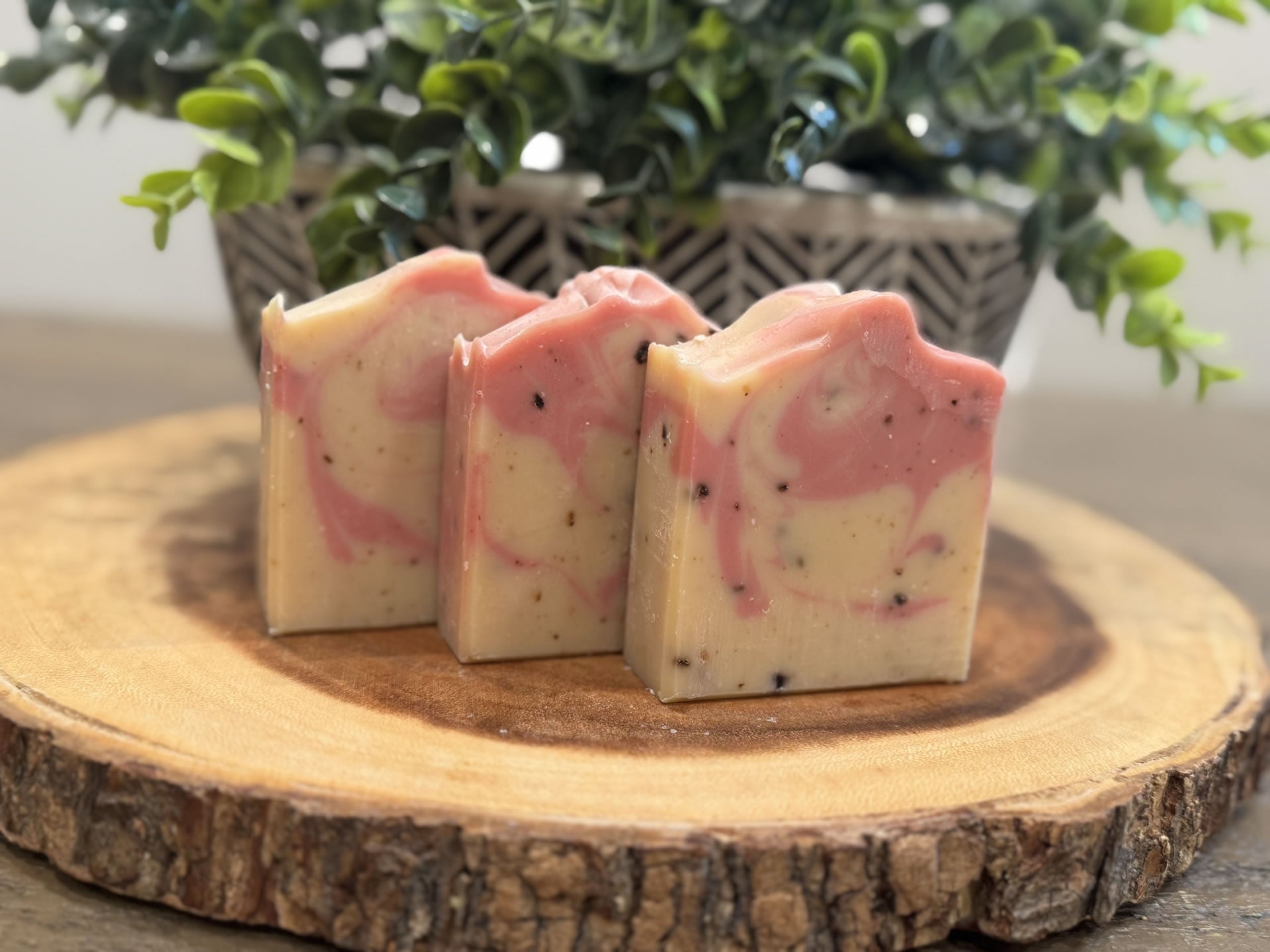 Olive Oil, Coconut Oil, Shea Butter, Palm Oil, Castor Oil, Goats Milk, Sodium Hydroxide, Water, Fragrance Oil, Kaolin Clay, Mica Powder